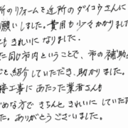 ダイコウは地域密着のリフォーム店です。 余分な経費をかけないために、 工事対応地域を明確にしています。 だから、アフターやメンテナンス等、 キメ細やかに対応します。 おかげさまで4,000件以上の実績。 そして、6割以上がOBのお客様から ご依頼を頂いております。 戸建て・マンションのリフォームは、 是非ダイコウへご相談下さい。