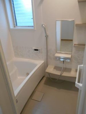 棚やカウンター、そして鏡もありません。シャワーの付いた水栓があるだけのシンプルな浴室です。身体を洗う為の部屋ですね。【身体も心もリフレッシュして癒される空間】にリフォームします。【浴室のお掃除】という負担も軽くします。扉を開けた時の「窮屈感」も無くなりますよ。