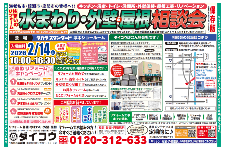 2026年2月14日(土)リフォーム相談会のお知らせ