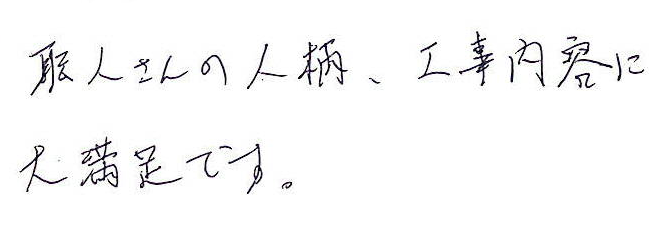 ・リフォームに続いて今回の修繕工事も丁寧に施行してもらえました。・職人さんにも気楽に相談ができこれからの生活の中で参考にすることにしました。・返事がたいへんおそくなりすみませんでした。